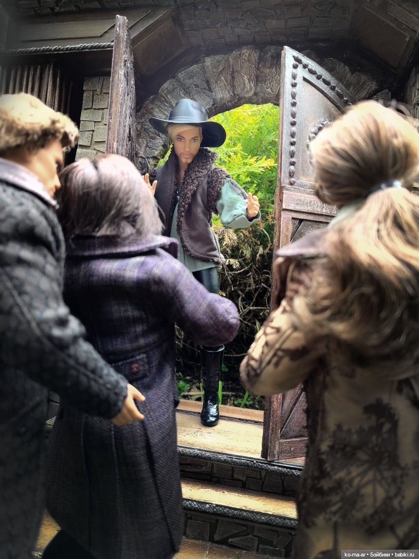 Смотрится словно куклы входят в жилище хоббита. Но крупнее я делать не решилась. И так декорации занимают уже очень много места.