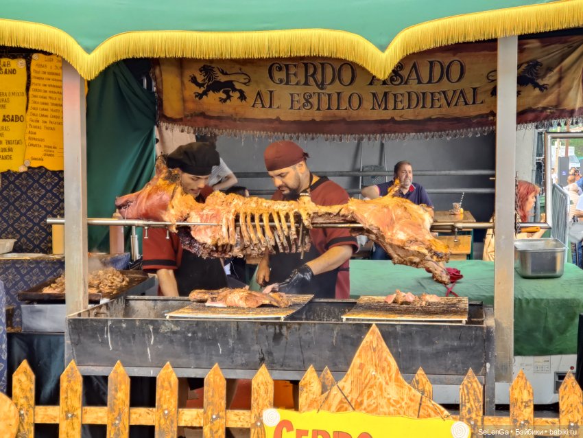 Свиная голова в планах, и колбасы, и тушка на вертеле.
