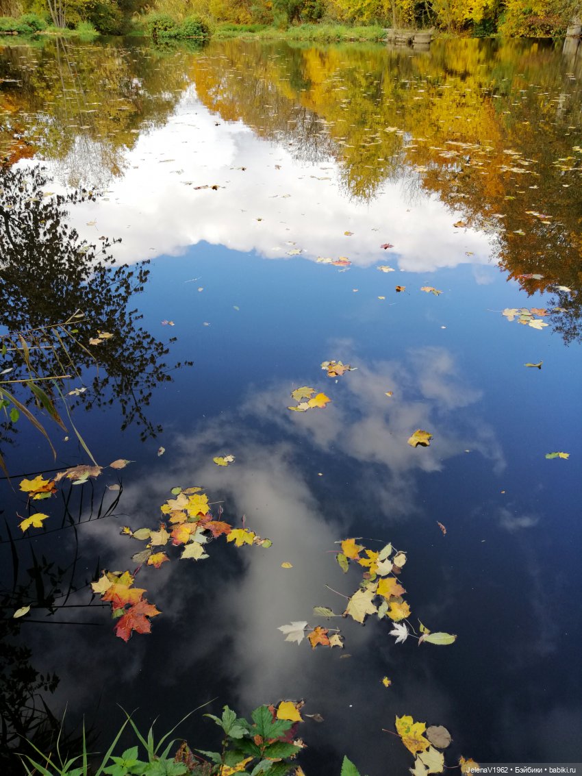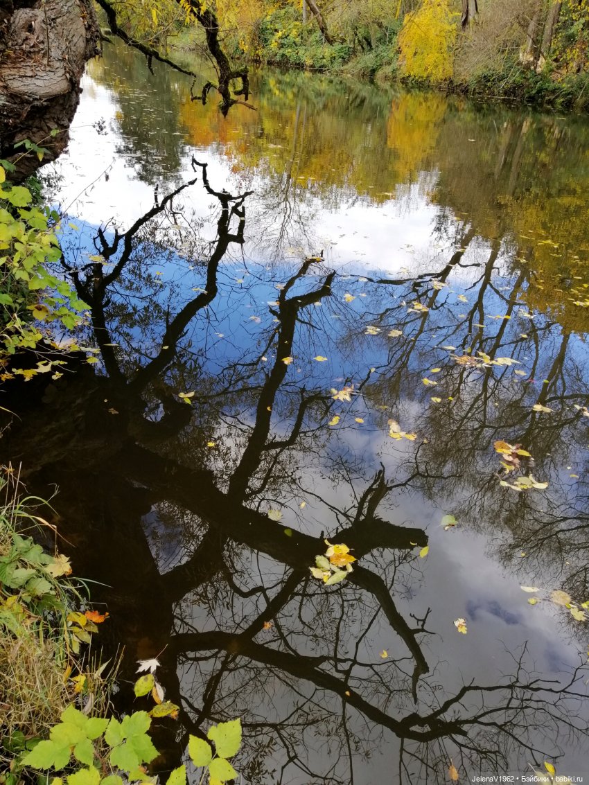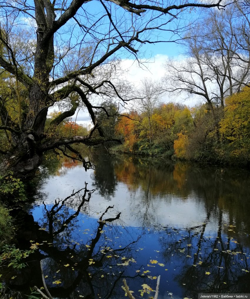 У нас городок небольшой, природа очень красивая, речка рядом с домом. Тоже долго было всё зелёное, а сейчас картина меняется каждый день — и разноцветное было, потом всё жёлтое, сегодня заметно коричневеет. В воскресенье вышла утром, пришла к обеду, не успокоилась, пока не обошла все красивые места. Сегодня не удержалась, ещё раз прошла вдоль речки.