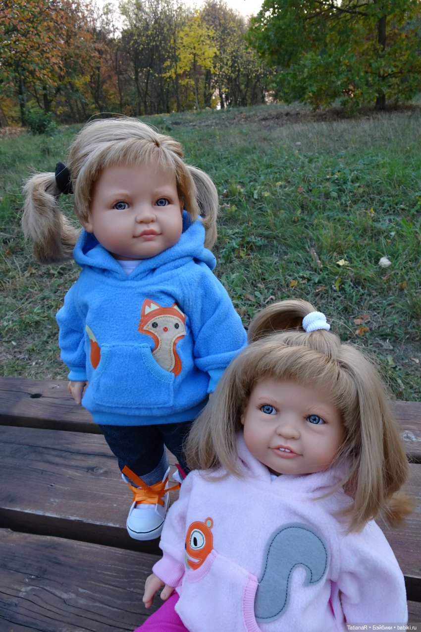 А эти девочки — Леонор от Паола Рейна, созданы в честь испанской принцессы Леонор, когда она еще была ребенком. У меня Леонорочки появились, и до того понравились, что я взяла их с собой в поездку. Гуляли мы только в лесах, да еще в машине девчонки «рулили», показывать особенно было и нечего))