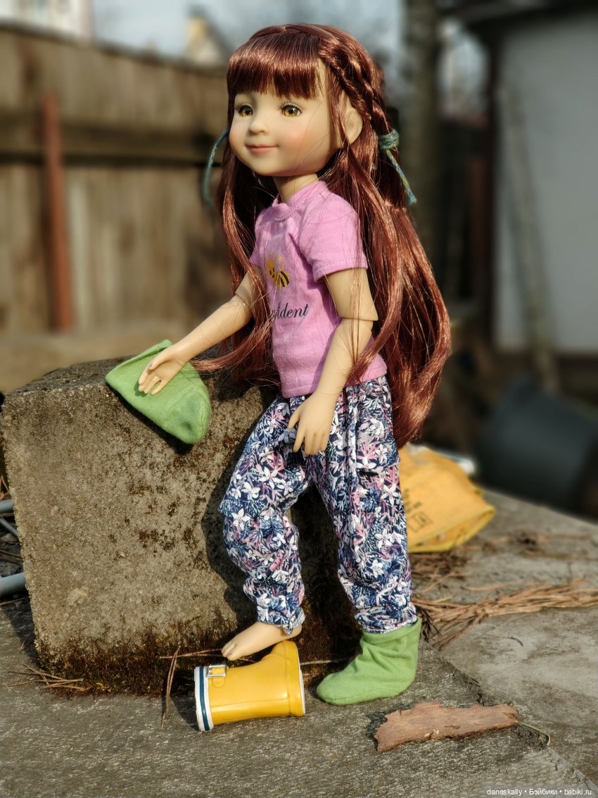 Сам по себе цвет винила у куколки не в зелень, а скорее, в лёгкую смуглоту. Куколку это абсолютно не портит. Просто она вот такая смугляночка с синими глазками.