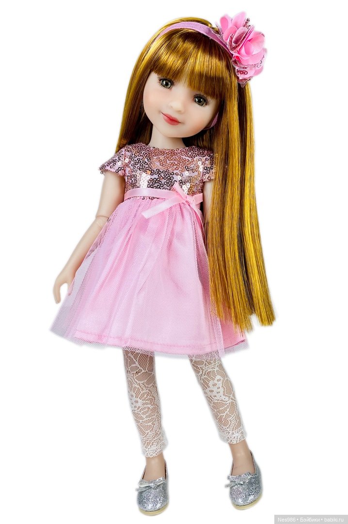 И о грустном. Самый большой минус Кайлы оказался в натяжке. Из трёх моих рубинок натяжка Кайлы самая тугая и в результате она ничего не может сделать, только стоять почти по стойке смирно. Куколку Кайлы нам демонстрирует Эйра, Кайла сама так её удержать не может — руки расходятся. Поставить её тоже сложнее, чем других девочек. Кстати! Умилило, что у куколки съёмное платьице.