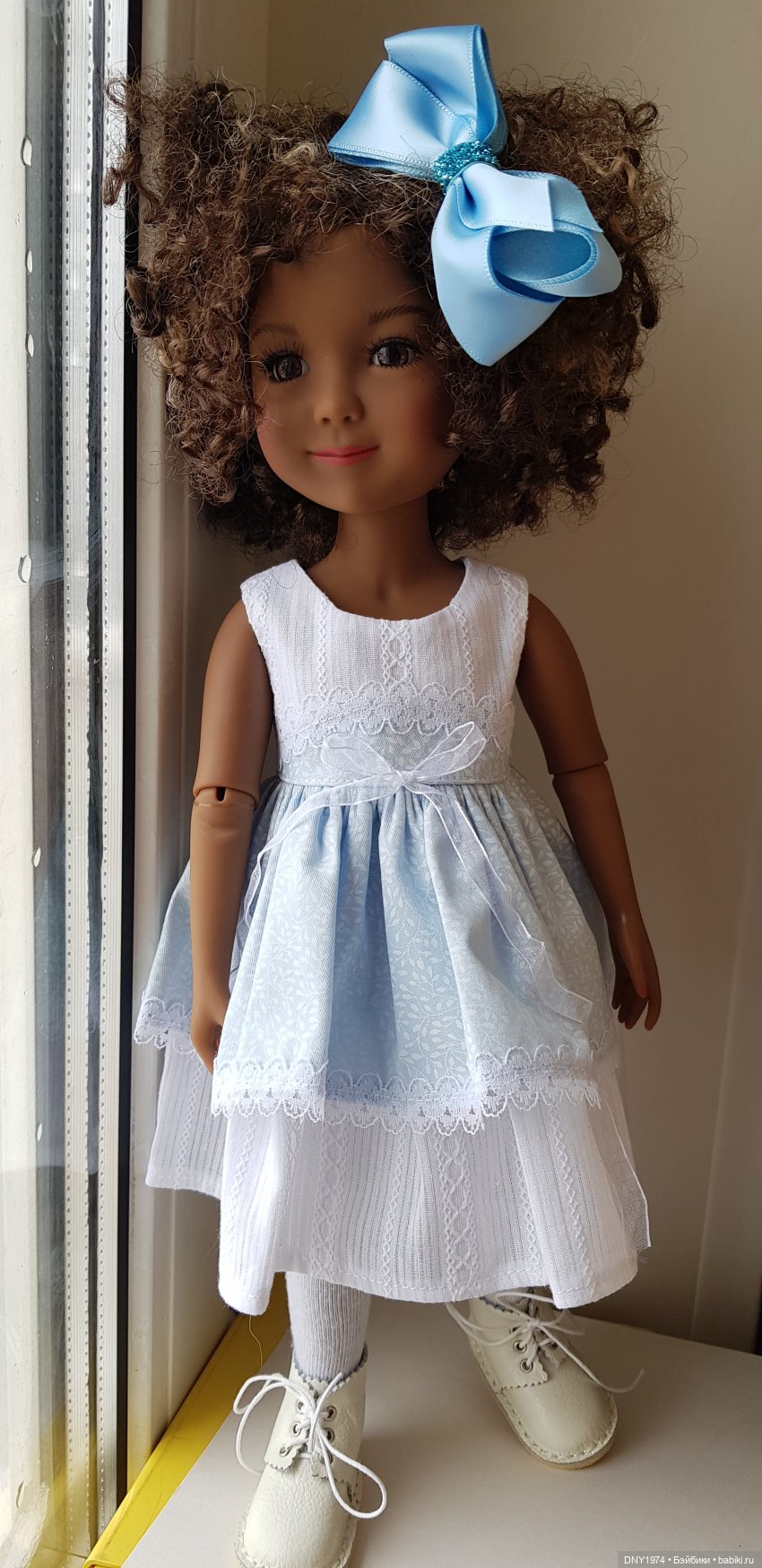 Волосы — и цвет парика, и качество — мне тоже очень понравились. Очень опрятные и аккуратные локоны, надеюсь, такими они и останутся дальше. У моей Дарлы схожие локоны в причёске, но вот они безнадёжно растрепались сразу, на что я уже жаловалась. И волосы Кайлы намного мягче и приятнее на ощупь волос Дарлы, что тоже плюс.