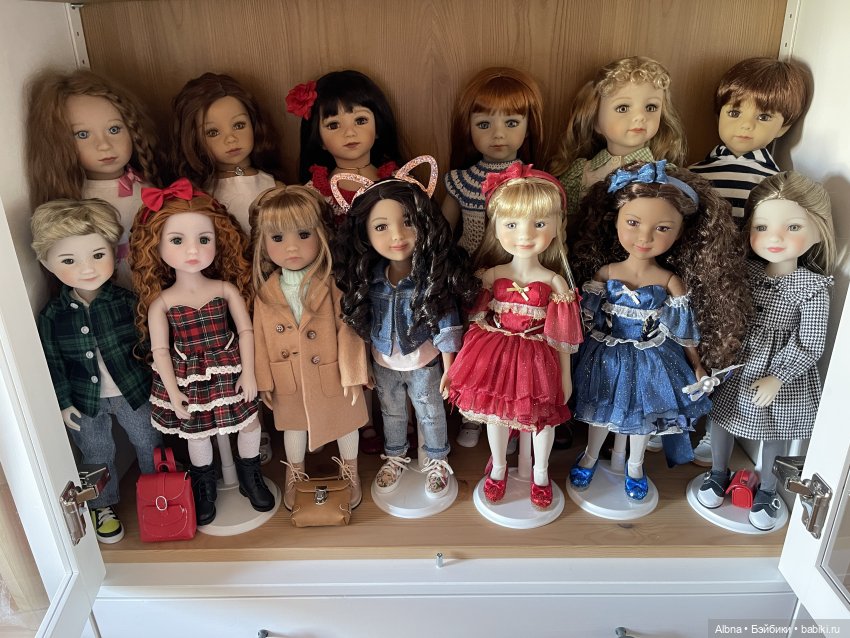 Успела я оформить предзаказ (кукол всего 70, а желающих понятное дело, много) и стали мы ждать. Но ждать пришлось дольше обычного, заболеваемость в Китае сделала свое дело и дождались Анну мы только в начале мая. Но ожидание было вознаграждено. Анна- или как ее сразу назвала дочка- Аня, просто чудо. Умненькое личико, внимательные красивущие карие глазки, цвет волос золотистый, прическа… А аутфит- это просто отдельный восторг. Даже портфельчик у нее есть. Переодевать в домашнее мы ее не хотим, весь образ ей очень идет.