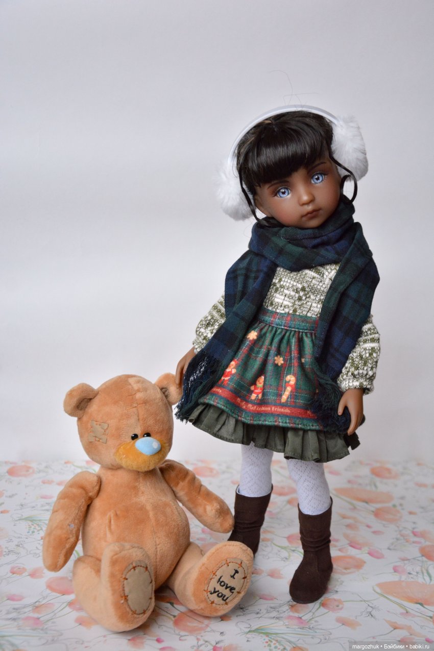 Куполка смуглая, но очень приятного оттенка винил. Глазки, очень красивого цвета, летнего, голубого неба:)