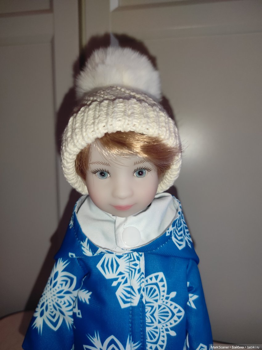 Второй эксперимент проделала на Бейли в кипятке. Всё хорошо, но парик мне пришлось снять. И когда меняла Рори, парик обмотала плёнкой и лицо окунула в большую металическую литровую кружку и пустила струйку горячей воды. Вода у меня бежала до тех пор, пока не прогрелся винил. Парик у Рори не отклеился. Обычным вязальным крючком подцепила и вынула. Вставляла слегка округлив пальцами глаз — акриловые полусферы 10мм со зрачком 5мм.
