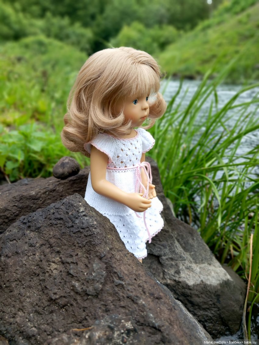Всем здравствуйте! Как-то подумалось мне, что совсем забыла я о своих девочках Руби. Стоят на полочке, скучают. Вооружившись спицами и моточком пряжи, решила исправить ситуацию, связав лёгкое летнее белое платье. Девчонки пошептались и решили, что платье лучше всего подойдёт