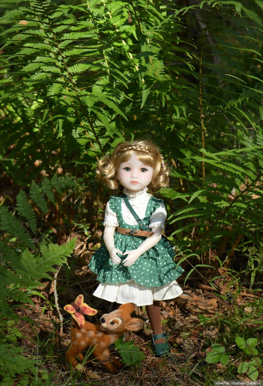 Малышка Дороти в изумрудном наряде чудесно смотрится в зелёных зарослях. А Крекер — прямо серьёзный такой мишка!