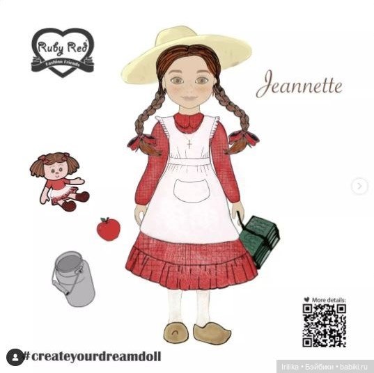 Коробка удивила тем, что не было крышки, обычно так пакуют пупсов, но кукла надежно прикреплена, насчитала 9 креплений. :)) В коробке маленький буклет с описанием легенды куклы. Жаннет из Альп. Сюжет истории и дизайн наряда от Сесиль из Франции.