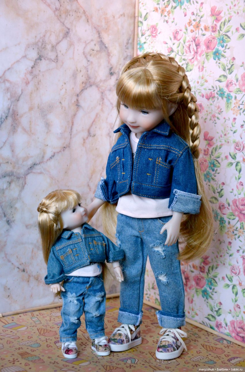И наконец — моя малявка мини Сара, вместе с высокими сестричками. К слову у этой крошки паричок не такой пышный, как у первой, но он держится, как влитой.