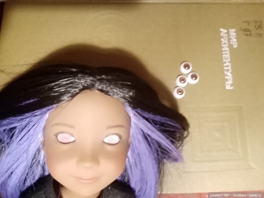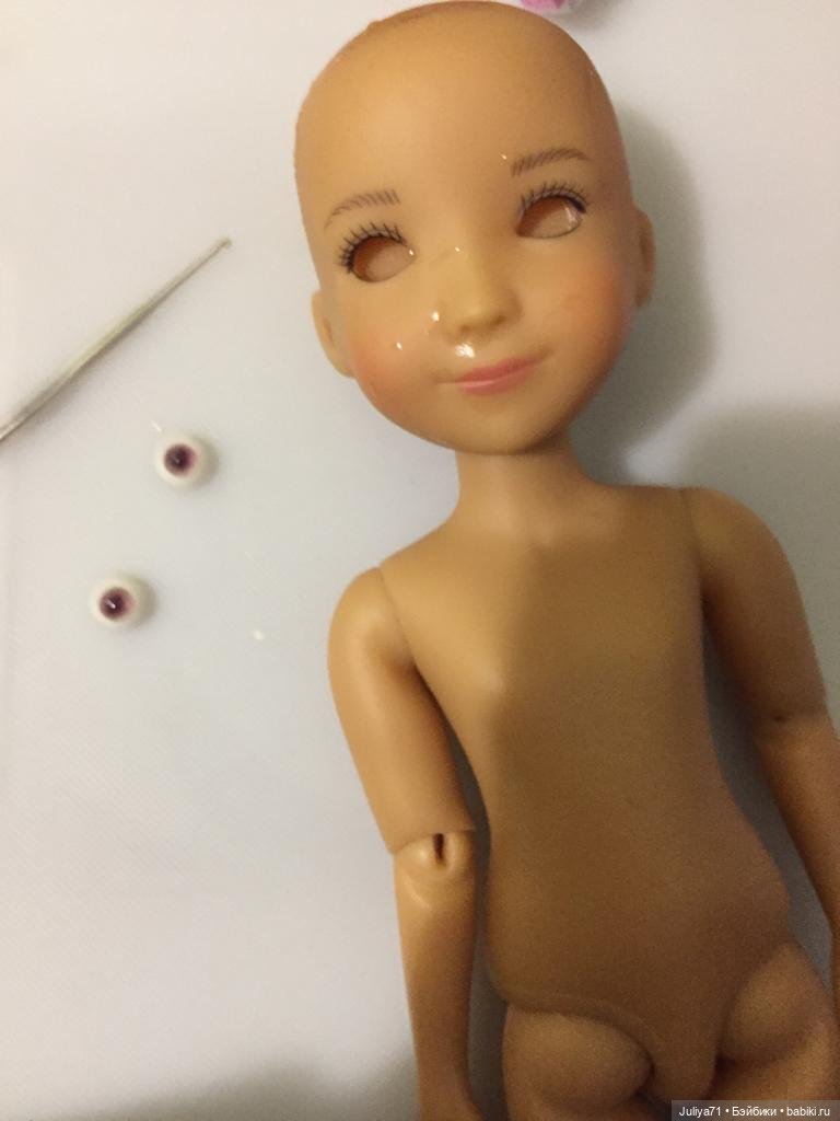 Глазки пришли в двух цветах и целый пакет, решила поставить обоим карие. Голубые я поставила другой куколке.