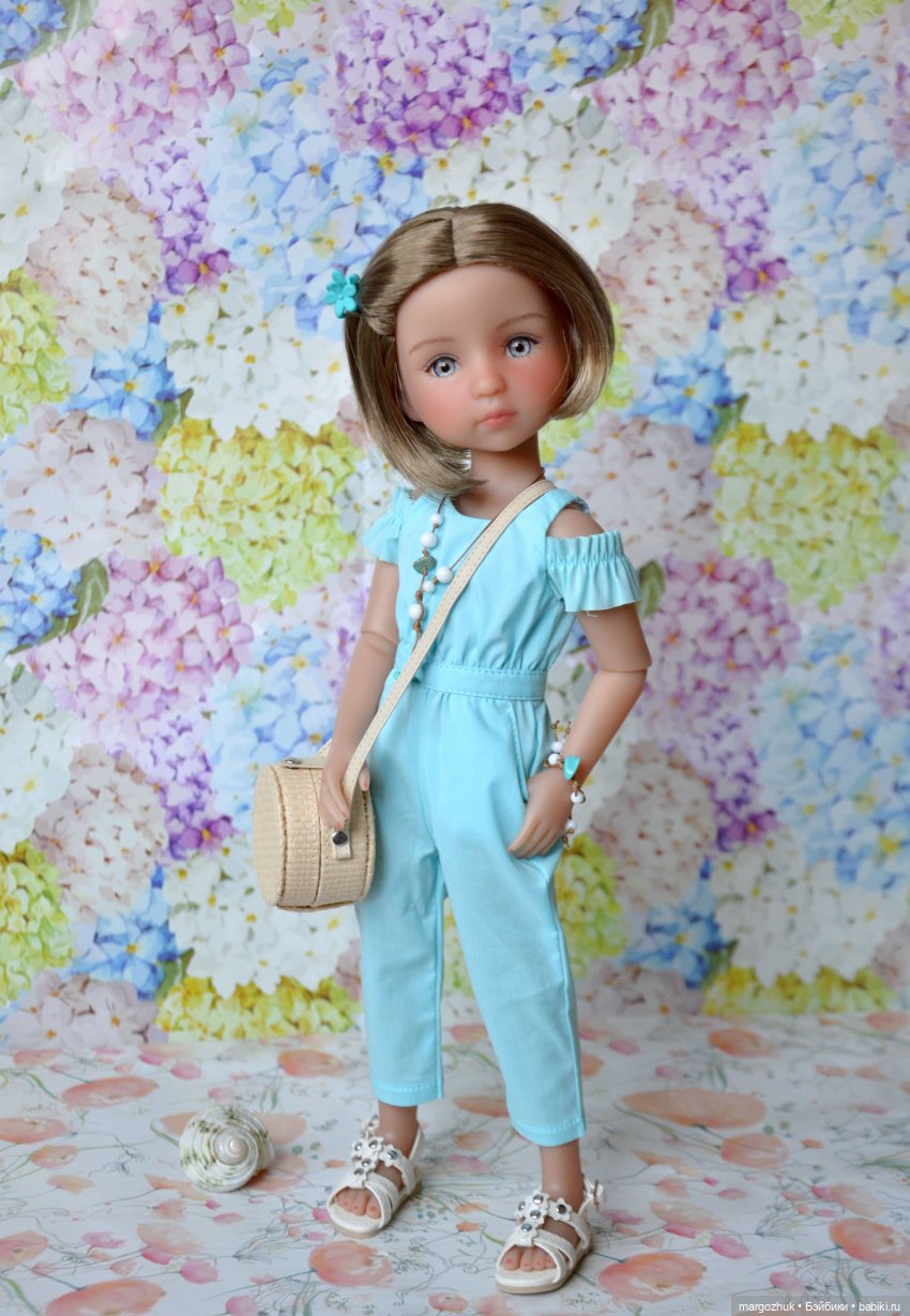 В комплекте одежды Марины две пары обуви (мокасины и босоножки) и платок, который можно использовать, как только фантазия подсказывает. Например, это фото могло бы украсить шоколадку «Алёнка»: