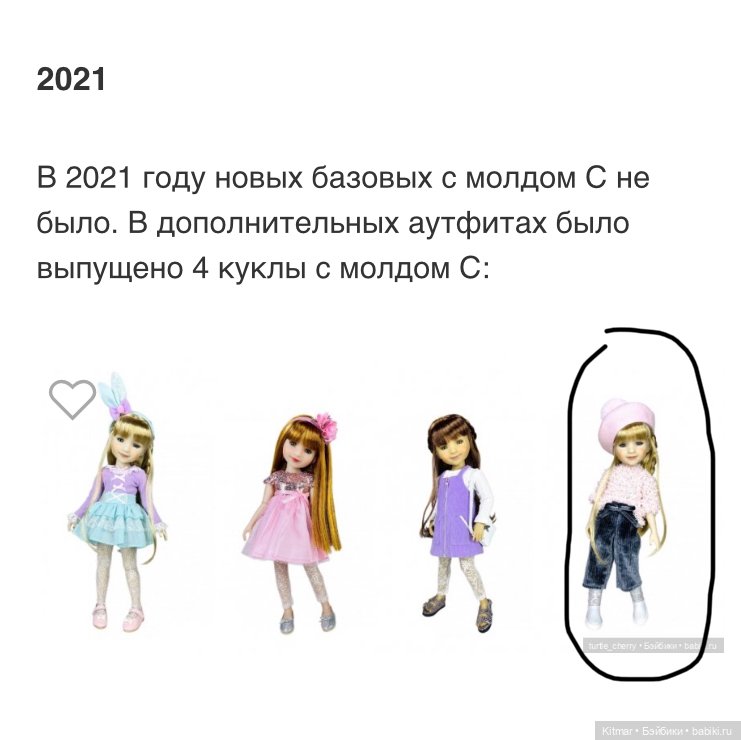 В 2021 году новых базовых с молдом С не было. В дополнительных аутфитах было выпущено 4 куклы с молдом С: