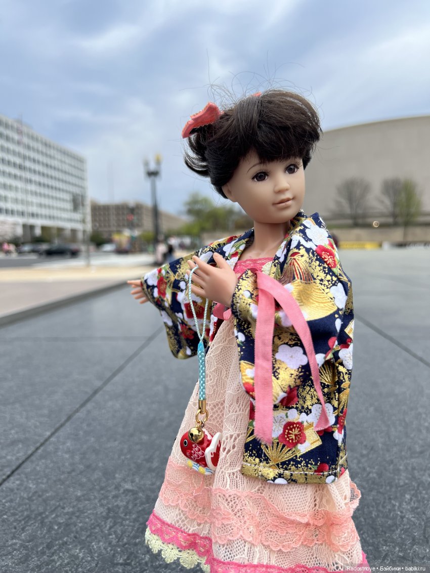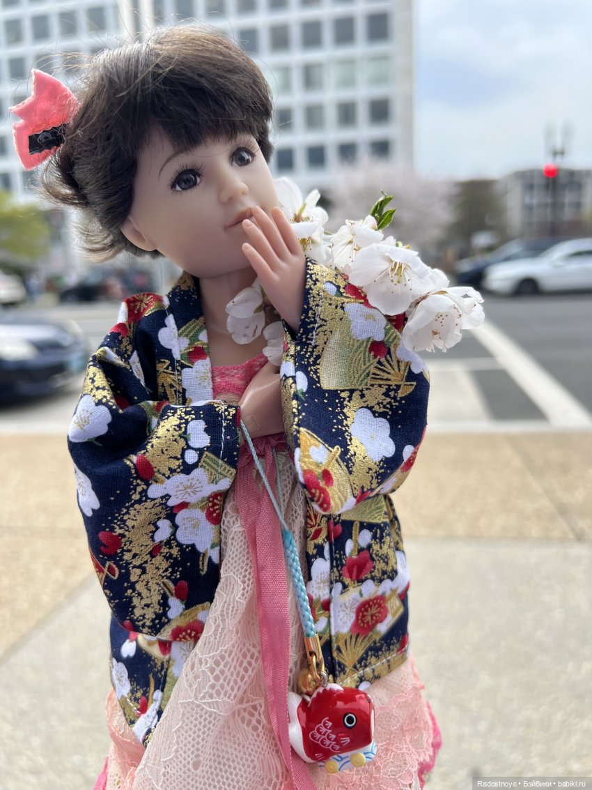 Для Майи я специально по этому случаю приобрела мини кимоно. И по приезду в столицу она сразу оценила красоту цветов и растений, украшающих улицы.