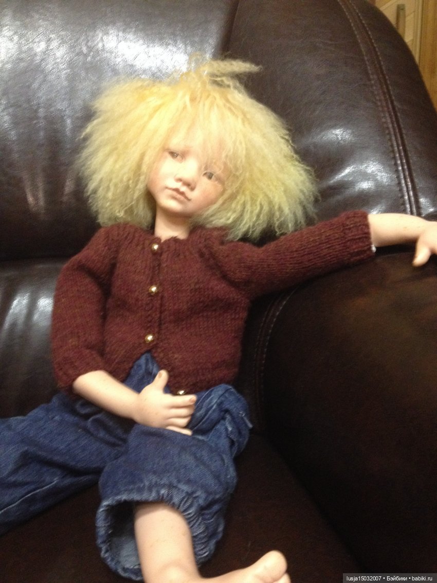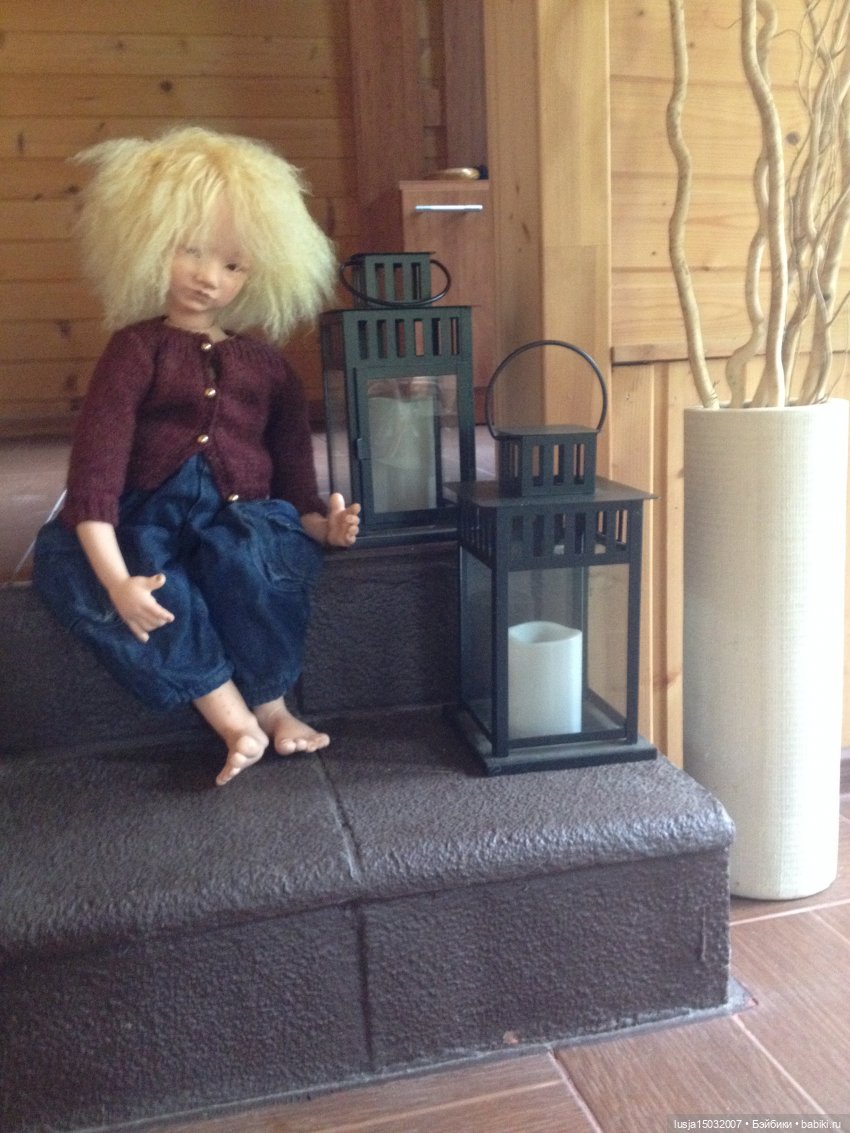 Большая примерно 65 см, тяжеленькая, вся такая тискательно обнимательная. Да, не обычная как и все куколки от Санди. Но я их поняла и приняла, хоть и не сразу. Сейчас просто не мыслю себя без этих чудных человечков:)