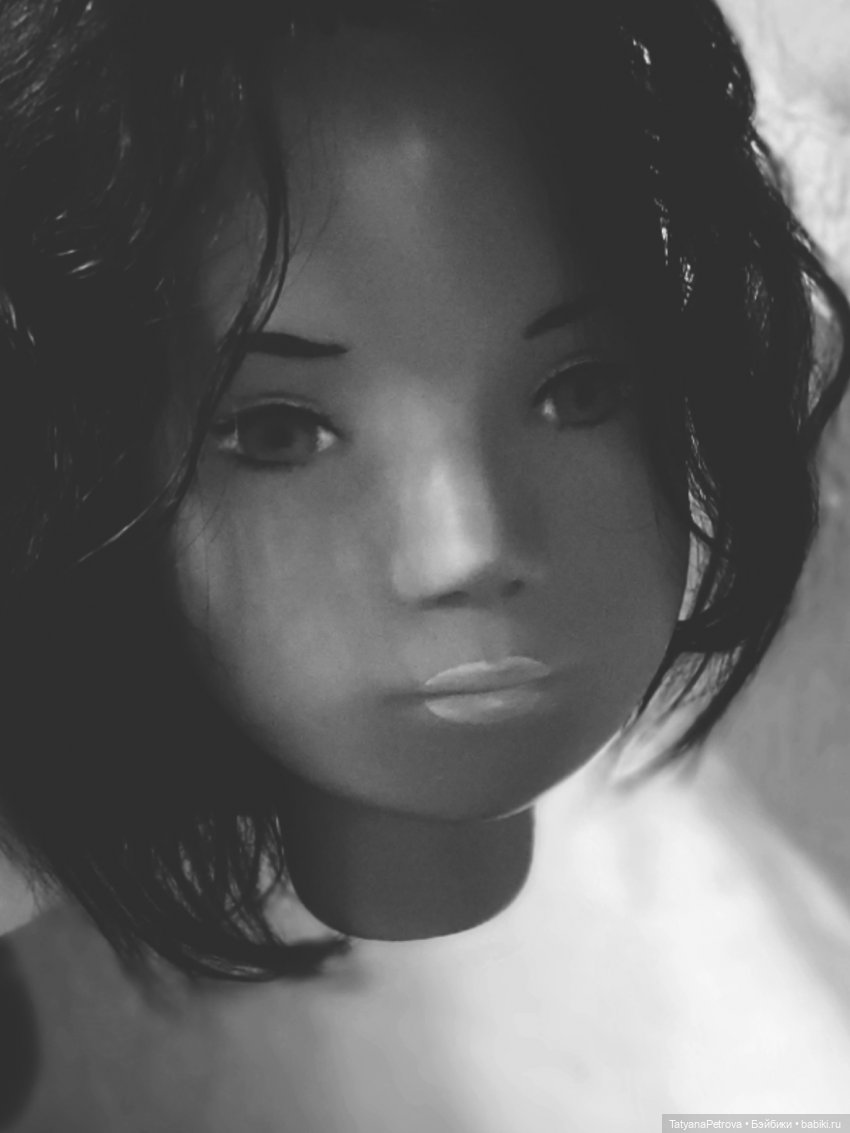 Она моя последняя девочка, которой я заменила волосы. В целом на перепрошивку четырех кукол я потратила весь июнь. Погода в Санкт-Петербурге была очень жаркой, вот и сидела я по вечерам с вентилятором и крутила узелки))