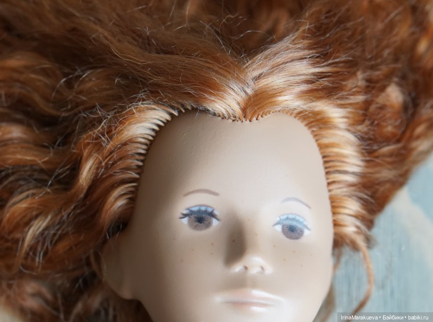 Теперь у неё волнистые рыжие волосы (использовала локоны козочки) и перетянута она итальянской корд-резинкой.