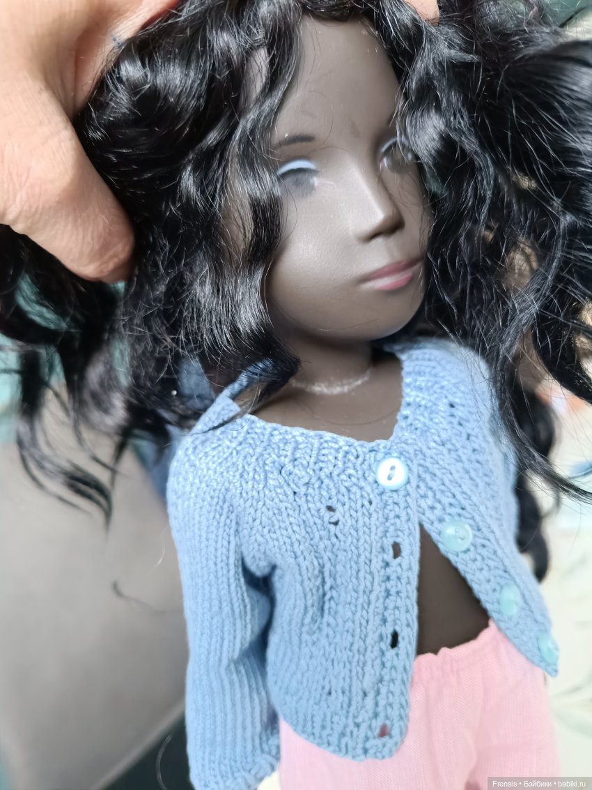 Ох, коллеги! Как же я хотела черную Кору! Ну не продаются они в ЕС! Редко, дорого и не темные. Нет-нет что-нибудь появится, но я тогда десяток вихтелей, например, покупаю… Короче, не складывалось долго. Коричневенький Калеб у меня есть. Он мальчик. Продавался в мужской одежде. Перепрошить жалко — уж больно кудряхи красивые. А притворяться, что он девочка просто не выходит. Детская травма в виде куклы Кости.