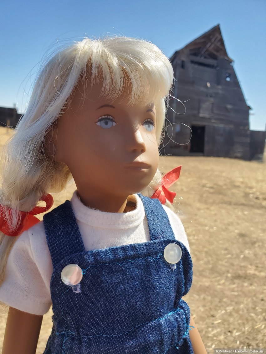 Недавно приобретённый джинсовый комбинезончик подтолкнул меня изменить образ Саши.