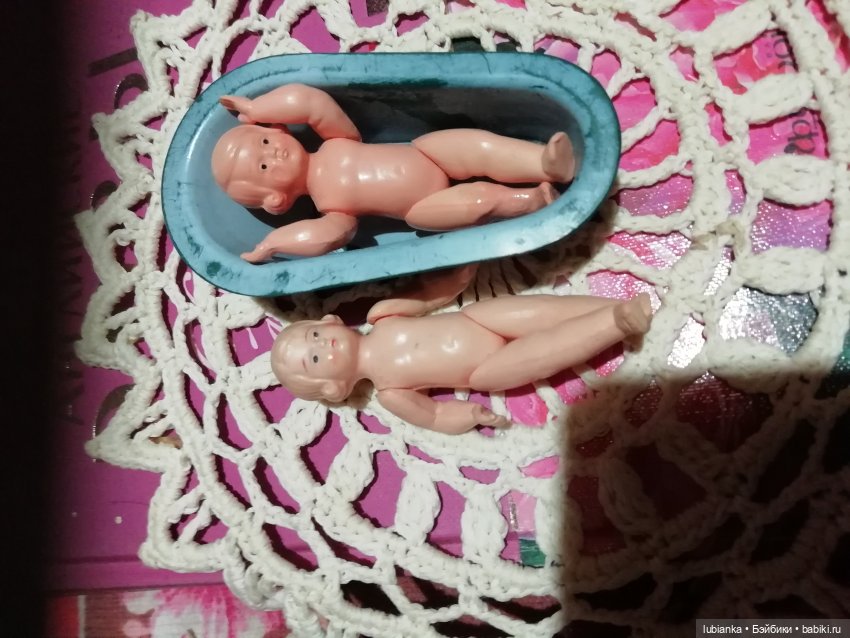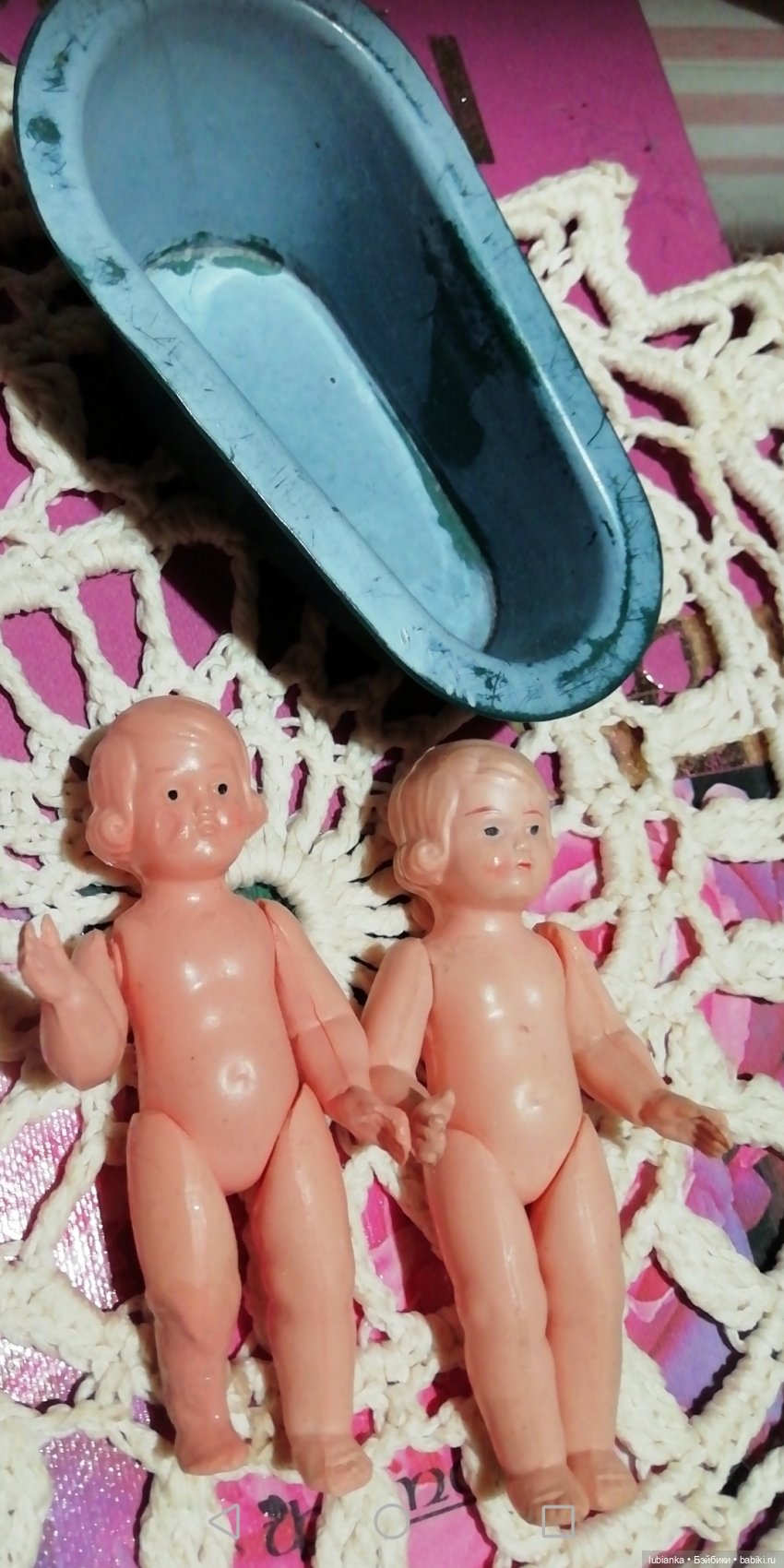 Приехала ко мне Дюймовочка с современной барахолки из Германии. Единственное, чем я смогла ей помочь, это выправить немного вмятину на щеке, предварительно распарив над кипятком. Дырку на затылке даже не знаю, возможно ли исправить. Может быть, есть умельцы/ценители таких куколок. В коллекцию пупсов, которых я собираю она не очень вписывается, но девочка очень нежная и трогательная. Таких куколок- хрупких и легких я раньше никогда не видела. Клеймо на спинке сохранено.