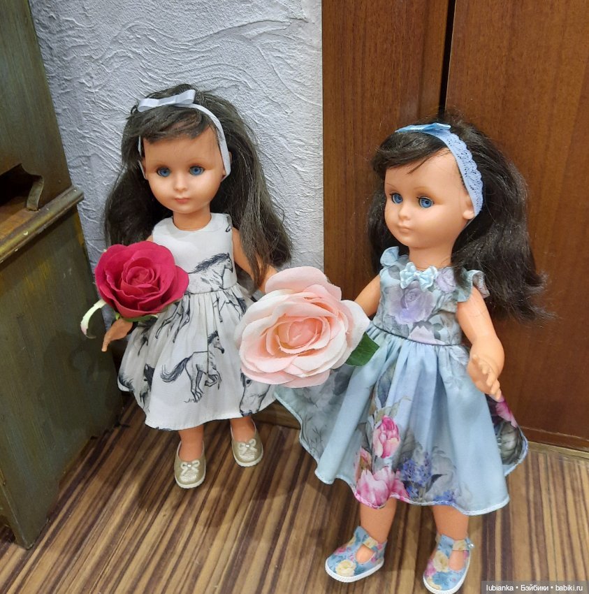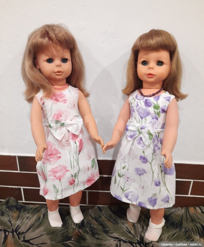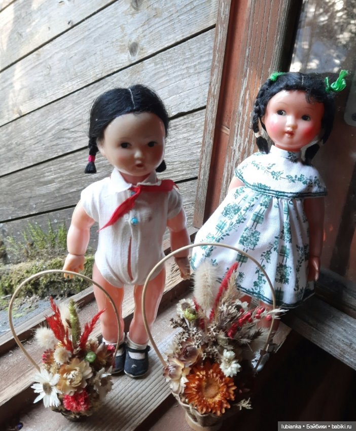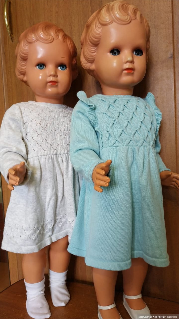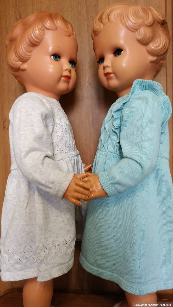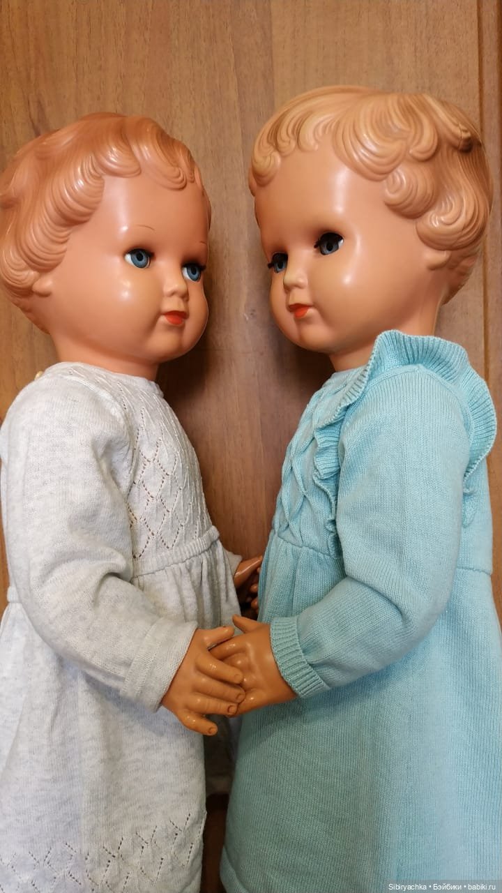 Варенька и Маруся изготовлены немецкой компанией Schildkrot много-много лет назад. Девочки достаточно высокие, на спине у них есть число 64 (см). У них отсутствует отличительное клеймо компании «черепаха в ромбе». У девочек сохранились пищики. Варенька может протяжно плакать, Маруся, к сожалению, лишена такой возможности.