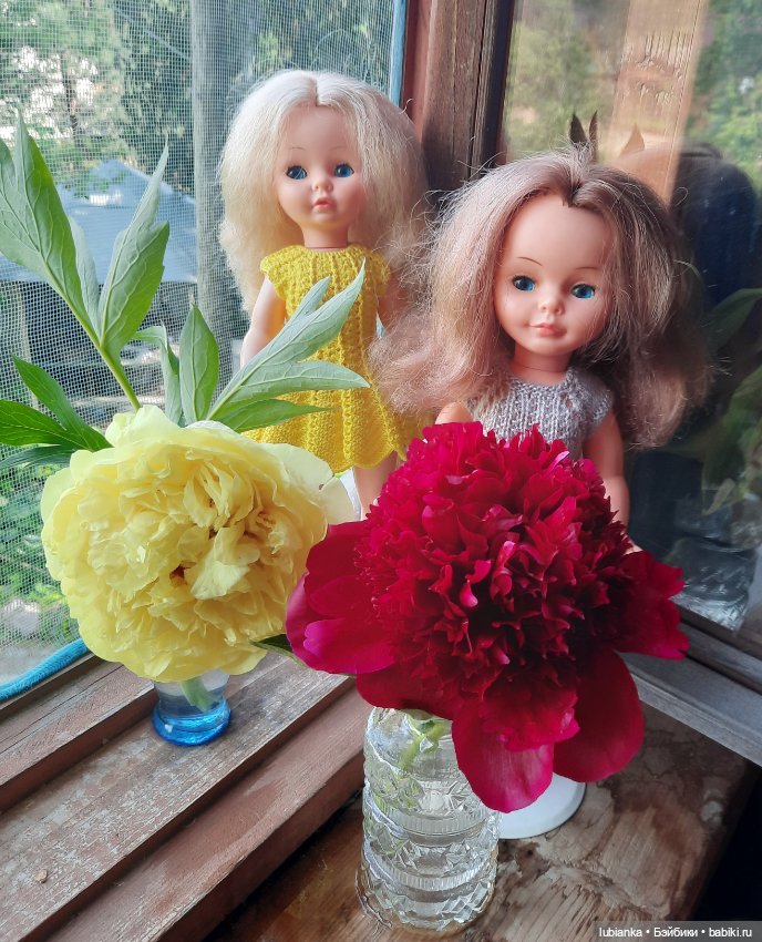 У Вареньки широко раскрытые глаза, обрамлённые красивыми ресницами. К сожалению, глаза Варенька уже не может закрывать, У Маруси глаза открываются и закрываются, зато она потеряла часть ресниц. У Вареньки красочный слой сохранился лучше, чем у Маруси. У Маруси больше потёртостей и шероховатостей. Несмотря на эти следы времени, для меня они — чудесные девочки, которых я очень люблю. В детстве я даже мечтать не могла о подобных куклах, зато с удовольствием играю сейчас.