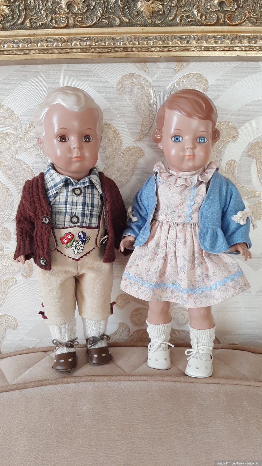 Здравствуйте!Поселила у себя очаровательную парочку. Для меня эти малыши необычные, вроде не мой формат, но чем-то зацепили — Барбель (Bärbel) и Ганс (Hans) от компании Шильдкрет (Schildkrot) «Черепашка». Понравились их рельефные причёсочки, аккуратненькие. Рост 25 см. Яркая одежда, красивые лица. Правда туфелек не было, поэтому обулись в то, что было пока.