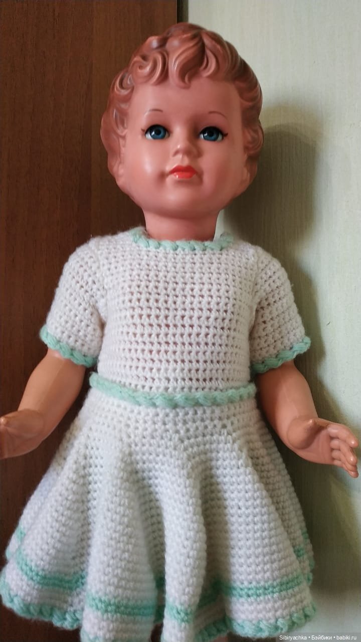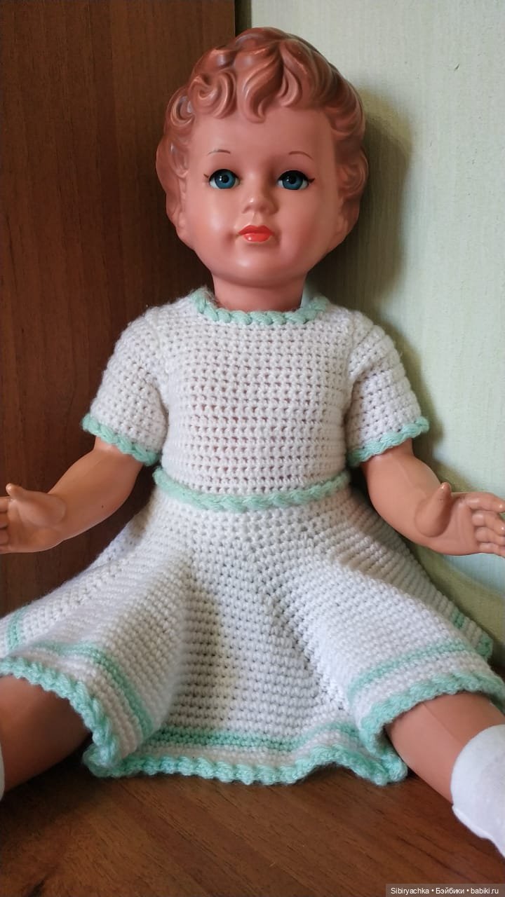У Наденьки чудесное белое платье, вязаное крючком, такие же вязаные трусики, носочки и туфельки.