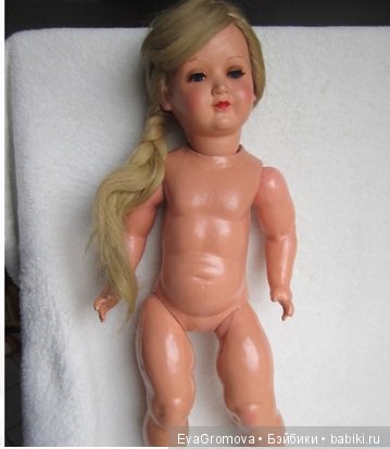 Доброго времени суток, дорогие форумчане! Сегодня топик будет коротеньким, в основном фотографии куколки, которая приехала совсем недавно. Эта винтажная немецкая куколка фабрики Schildkrot. Как сказал продавец «Vintage 1950's Celluloid Doll 18 дюймов Original Clothes Turtle Mark Rheinish Gummi», то есть куколка сделана из целлулоида, примерно 1950 года выпуска, ростом 46 см, в оригинальной одежде.