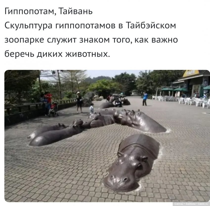 11. Гиппопотамы, Тайбэй, Тайвань. Скульптура в зоопарке служит знаком того, как важно беречь диких животных.