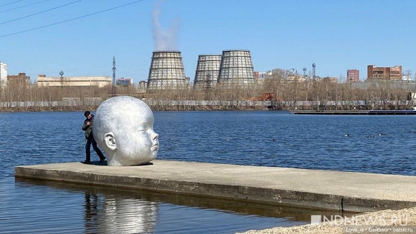 Инсталляция «живет» вместе с рекой. Из-за приливов и отливов лицо девушки то почти полностью уходит под воду, оставляя на поверхности лишь макушку, то триумфально «выныривает» по плечи.