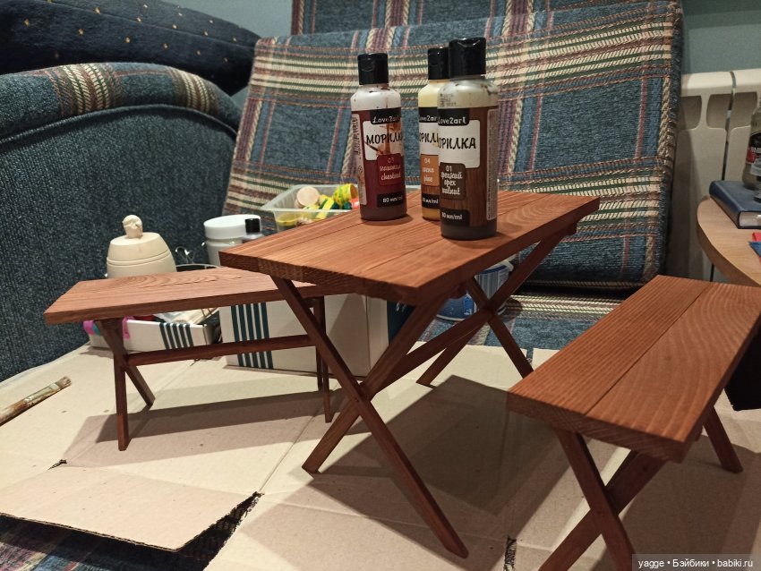 На ДоллСкар этого года он из реек смастерил в нашу таверну деревенский стол и лавки.