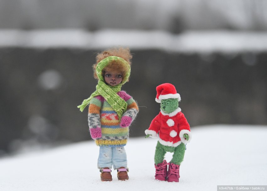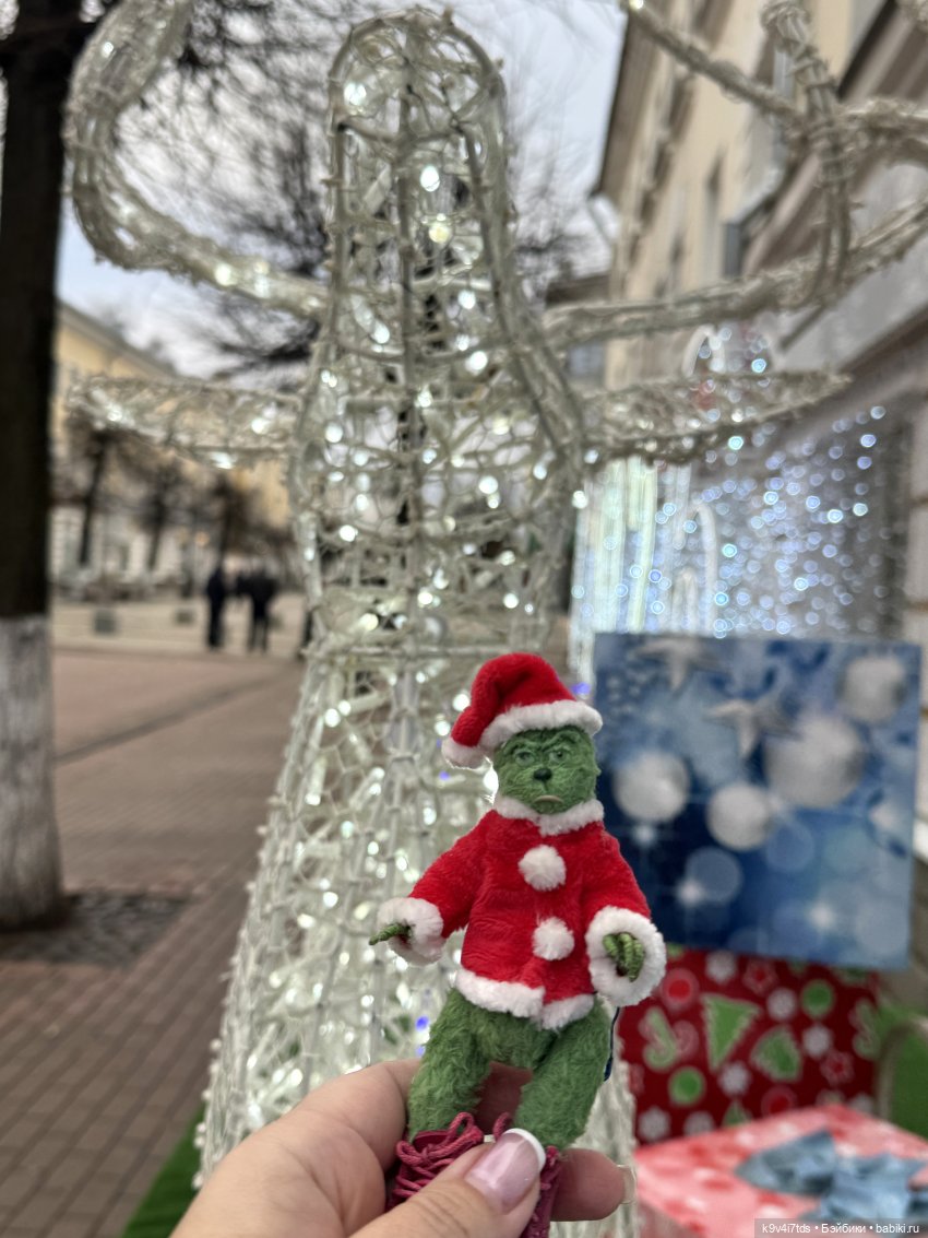 Вот каким взглядом посмотрел на меня Гринч, когда я его увидела на полочке авторских игрушек. Конечно, купила :)