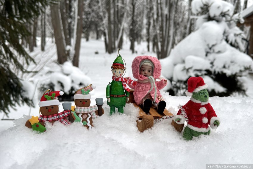 Гринч, Рождественский Эльф и Пряничные Человечки ждали Лоло на горке!