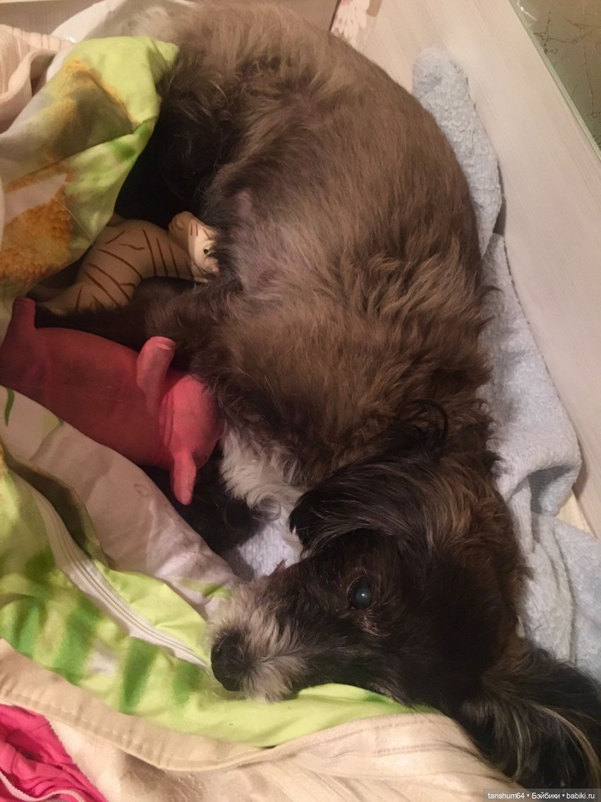А это Кнопса, пока внуков нет, она у сына с женой мне “внучатая собачка»