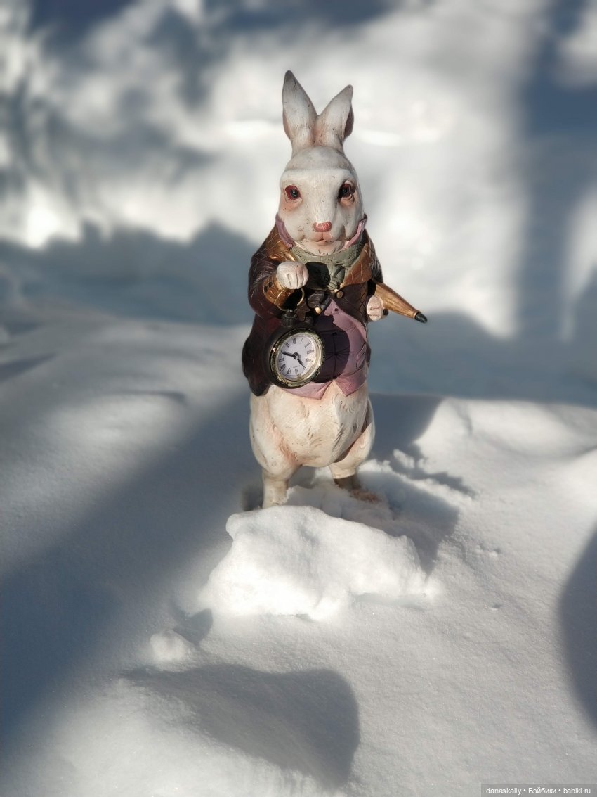 Белый Кролик в жилете и с зонтиком, что очень предусмотрительно, пробирался через сугроб и приговаривал: " Ах, боже мой, боже мой! Я опаздываю!"