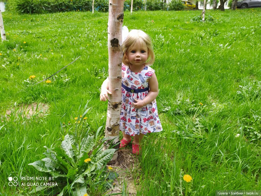 И так, Жози маленькая, до 50 см, девочка, у неё мягкое, тискательное тельце.Шикарные, натуральные волосы блонд паричком, длинные и густые.Красивые, голубые глазки из стекла с нарисованными ресничками.Пухленькие, милые губки.Головушка наклонно-поворотная.Кожаные туфельки.Одета она была в наряд от Сигикид, состоящий из клетчатого платьица с белым воротничком и передничка с медвежатами.К сожалению, сняв наряд перед банными процедурами, мы не сфотографировались, а примерили совсем другое одеяние, в котором и прошла наша фотосессия:)))Наряд шился нами для девочки плюшечки Николетты, но Джози идеально подошёл:)