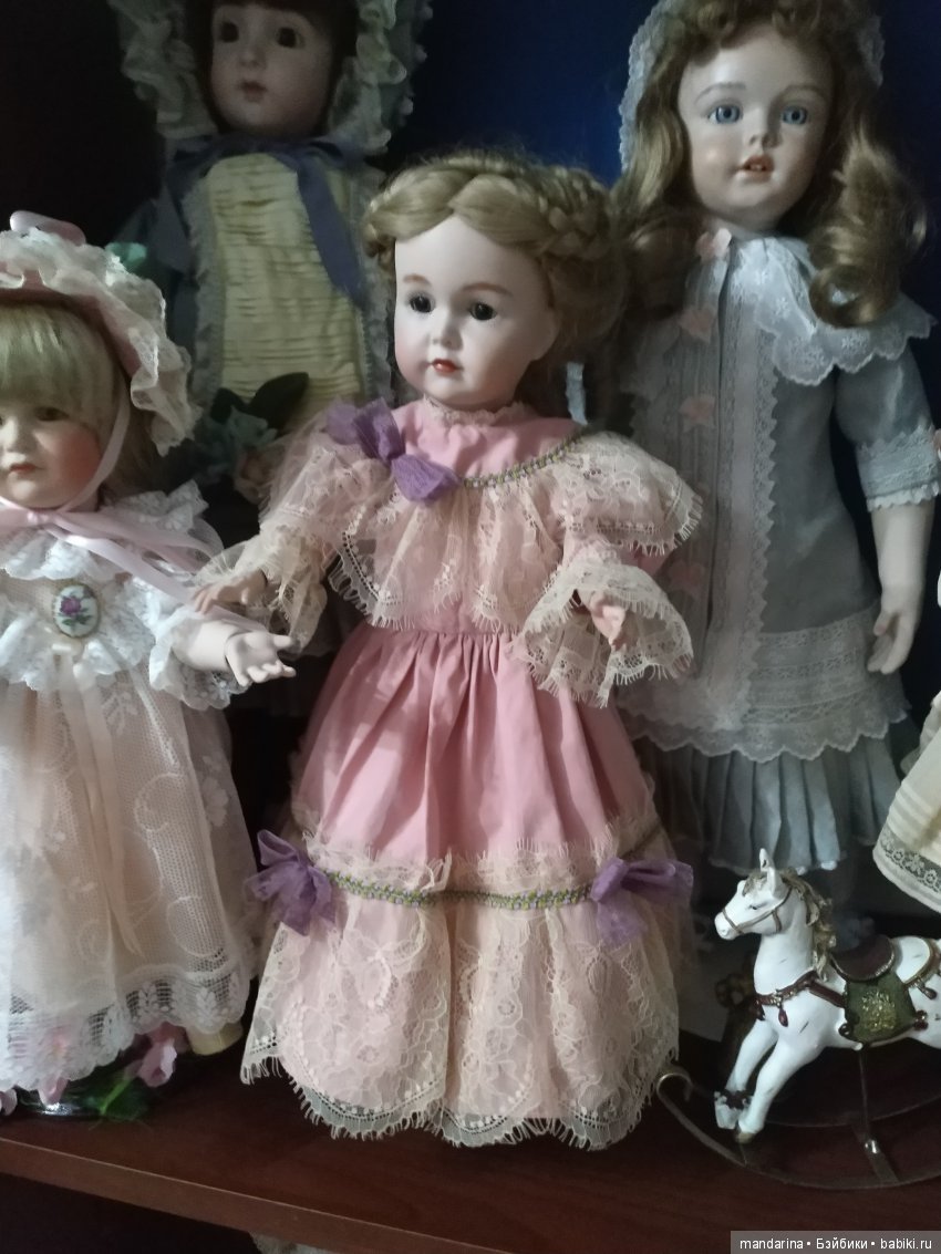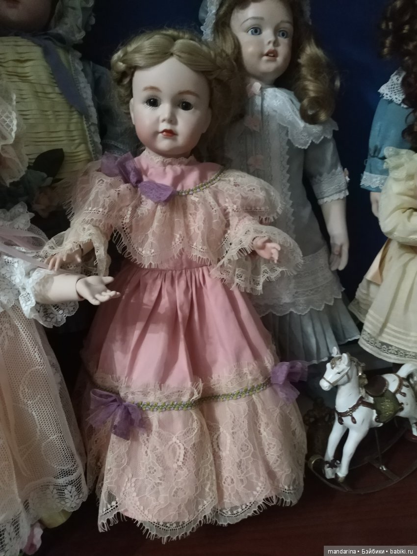 Так что Вы абсолютно правы, что переодели девочку. Одежда, в которой она к Вам приехала, ничего общего не имеет с этой куклой. Да это не платье антикварной куклы ни разу. А сейчас она выглядит замечательно!