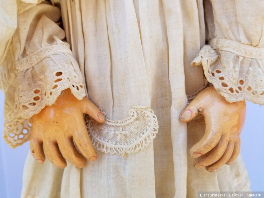 Эта кукла покорила меня с первого взгляда своим фантастическим антикварным нарядом, ростом 76 см и довольно приличным состоянием, несмотря на свои 100 лет, а может и более… А то, что она красотка, это и так понятно.