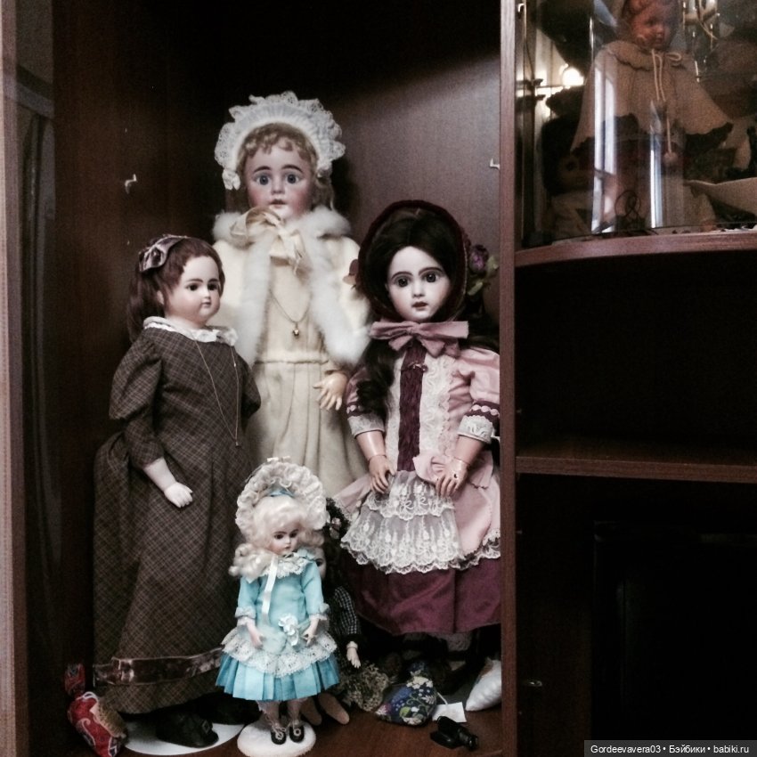 В моем доме всегда обитало много кукол, но современных. Перед антикварными я испытывала и страх и смущение одновременно. Но любопытство победило! Первой была обычная немецкая SH HH. Долго присматривалась к ней, пыталась понять и принять. Через 2-3 месяца девочка прижилась. Вскоре начала приводить подружек:))