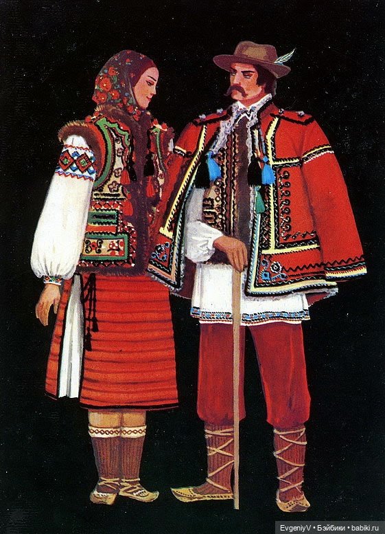 А костюм из Прикарпатья возможно имеет перекличку с румынским.