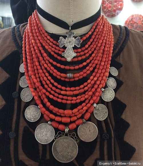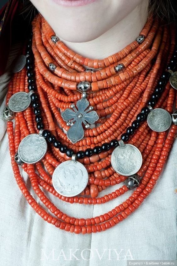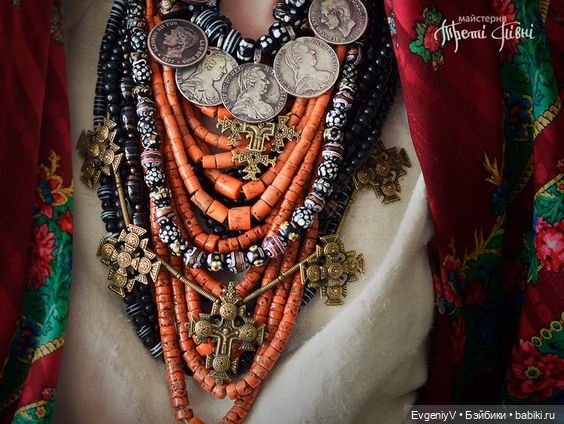 Из украшений присутствует намисто — ожерелье с крестом и монетами.