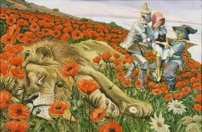 Друзья во главе со львом не могли уснуть в красно-маковом поле, потому что мак опиумный ( снотворный) имеет совсем другой цвет...)))