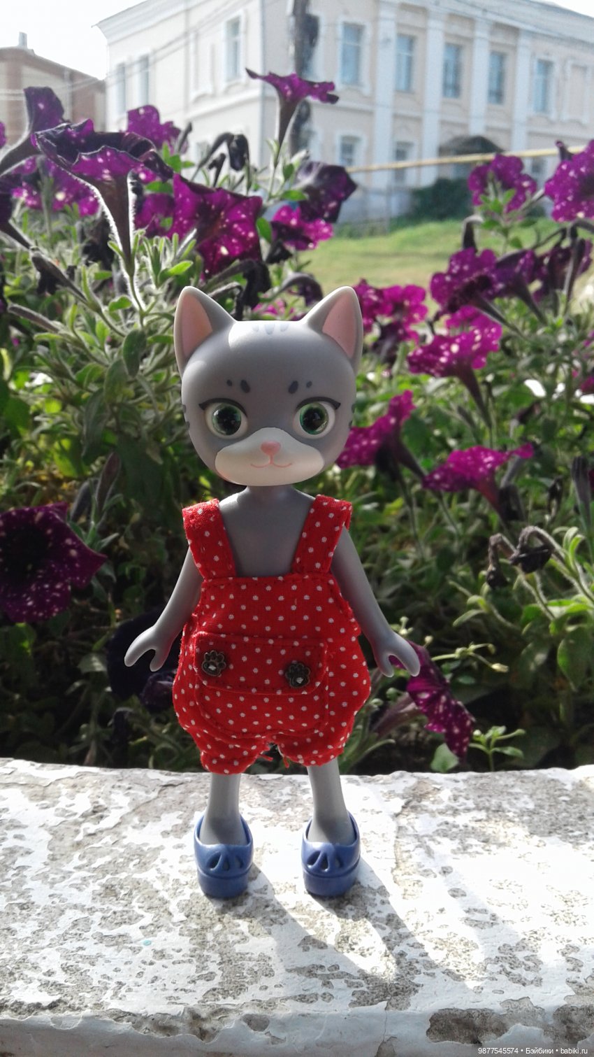 У мелких Котейки и Волчишки в разные дни наших прогулок были разные вариации гардероба (и заимствовали у других мелких кукол одежку, и между ними двумя меняли местами).