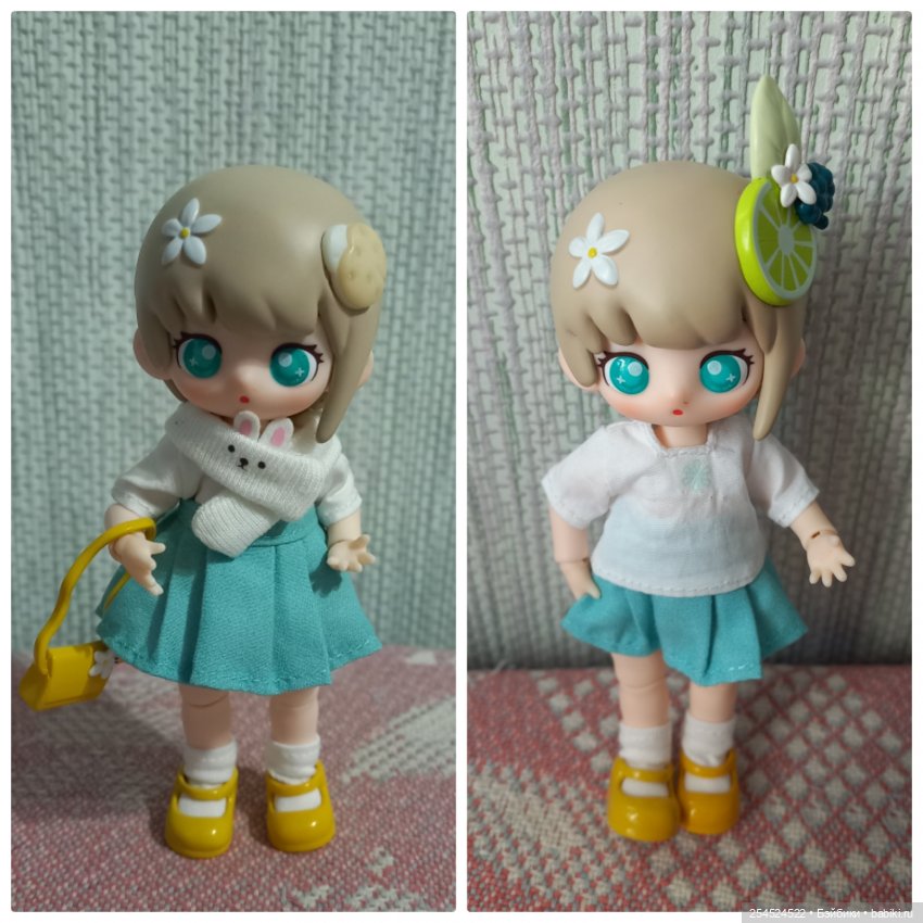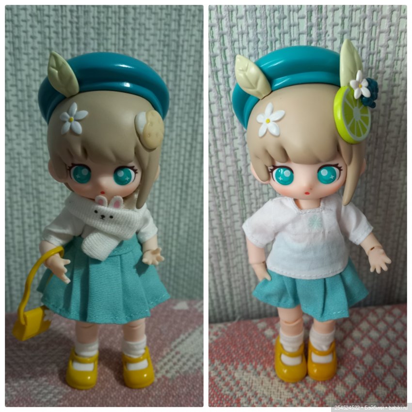 Это две куколки в серии, внимание (!!!), у которых съёмные шляпки. У Грейпфрута шляпки нет, но ушки в виде долек грейпфрута не снимаются.