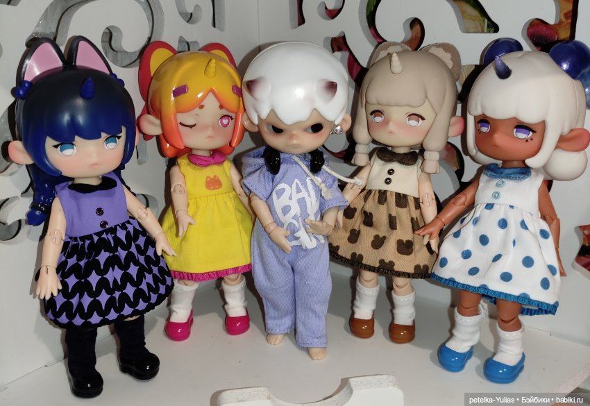 Мне вот прямо очень понравились куколки. Милые и маленькие. Мордашки немного удивленные за счёт больших глаз и ротика буковки «о», но цвет глаз, цвет волос очень гармонируют. Качество аутфитов прекрасное. Качество куколок не хуже Penny Box.
