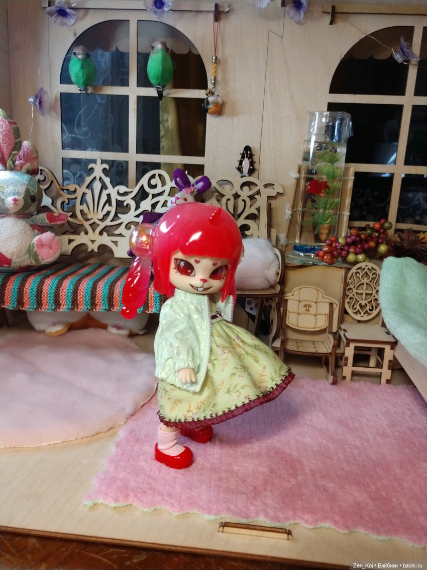 С рыженькой, конечно, они не очень продумали. Нравится ее прическа, но с ней так сложно. Зайка лишается подвижности полностью. Ещё заметила сегодня что если ее надо посадить, то сдвинуть грудной шарнир так же не получается, косички мешают. 😢