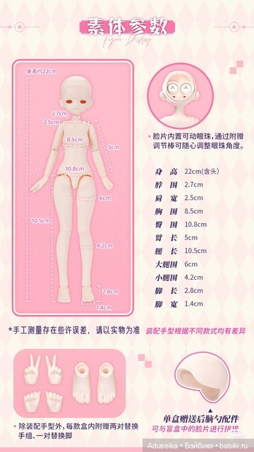 Ну а близнеца посмотреть взяла, там написано BJD, вот и думаю, что на резинку собрана будет наверное, и рост написан — 22 см