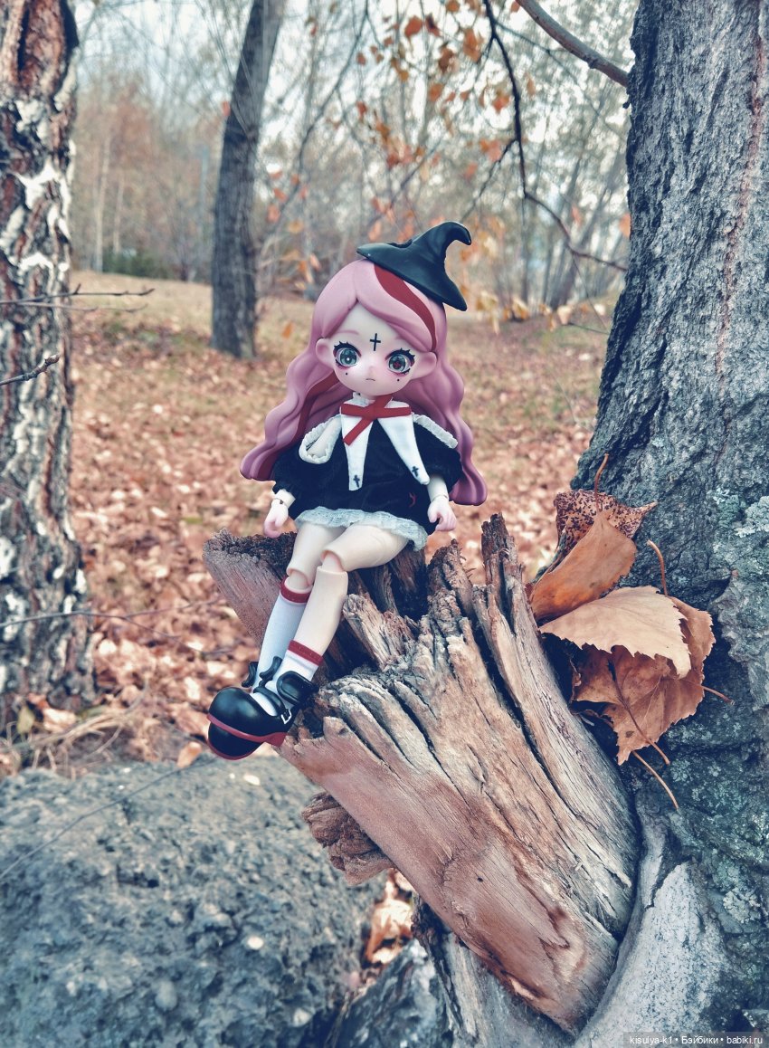 За окном октябрь, а значит, время для милой мрачноты (или мрачной милоты). Она приехала как раз к сезону, когда ночи длиннее дней, а воздух пропитан магией, милая маленькая Свечка Нисса. И, конечно, я сразу же потащила ее в лес. Потому что ну как не взять куколку в лес? А потом еще в парк, где мы снимали что-то вроде тыквенных натюрмортов.
