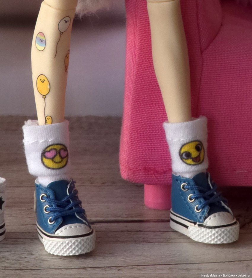Если речь о носках Лучиано, то там смайлики. Один с улыбкой, второй с сердечками. Это носки от rainbow high от мелкой Санни)